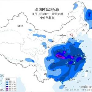 山东省气象台于11月17日06时00分继续发布寒潮蓝色预警:冷空气继续影响我省,预计17日白天到夜间,北风,滨州、东营、潍坊、...