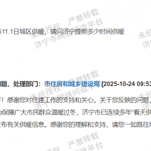 (济宁市网络问政平台截图)近日,有网友在济宁市网络问政平台留言咨询,济宁提前多少时间供暖?济宁市住房和城乡建设局回称...