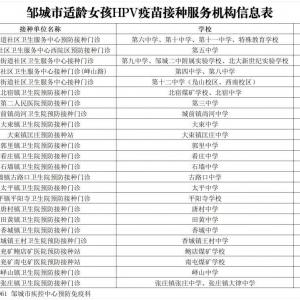 2025年9月起,邹城市将启动免费为适龄女孩接种HPV疫苗工作!届时,符合要求的适龄女孩可根据学校安排的预防接种门诊接种疫苗!