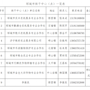 为切实做好粮食收获与储存服务,确保秋粮颗粒归仓,现将嘉祥县各镇街的粮食烘干服务点与农机应急作业队联络信息予以公布。