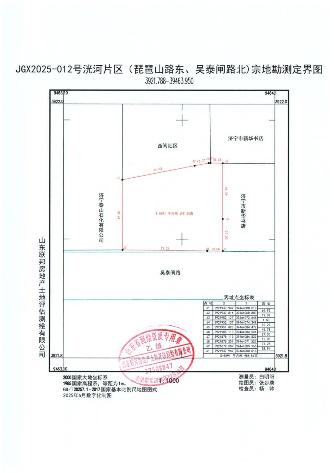 地块一:济宁高新区JGX2025-012号洸河片区(琵琶山路东吴泰闸路北)地块【济宁高新区洸河街道西闸社区股份经济合作社竞得】