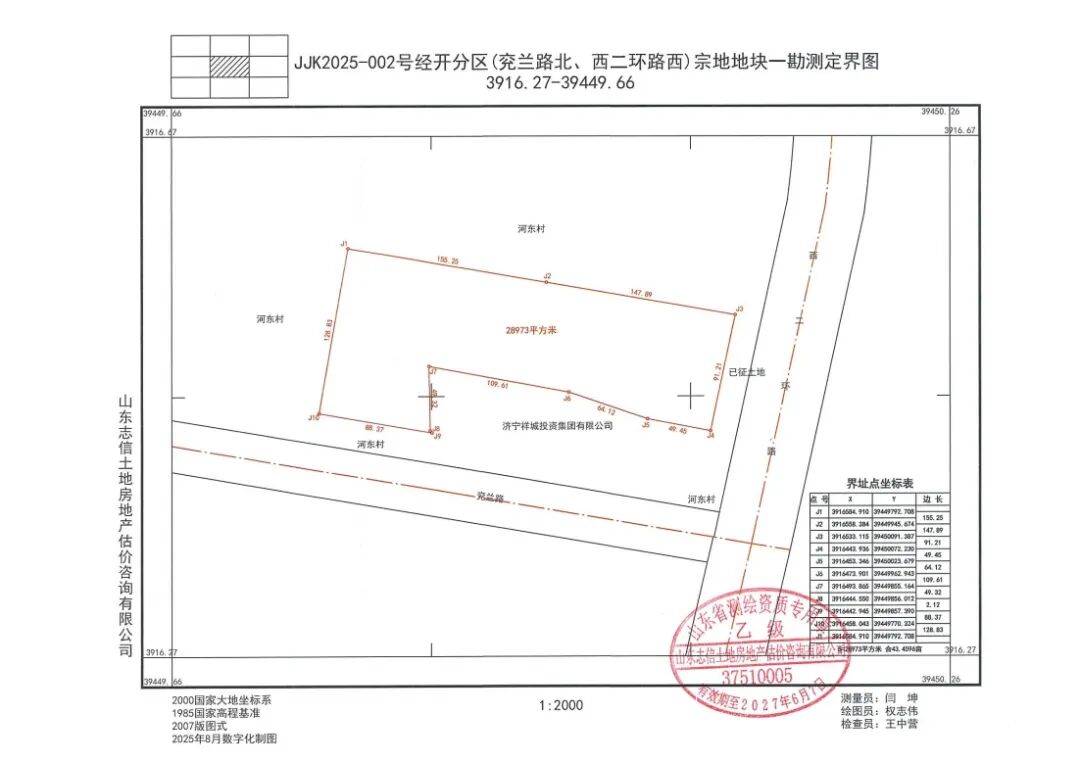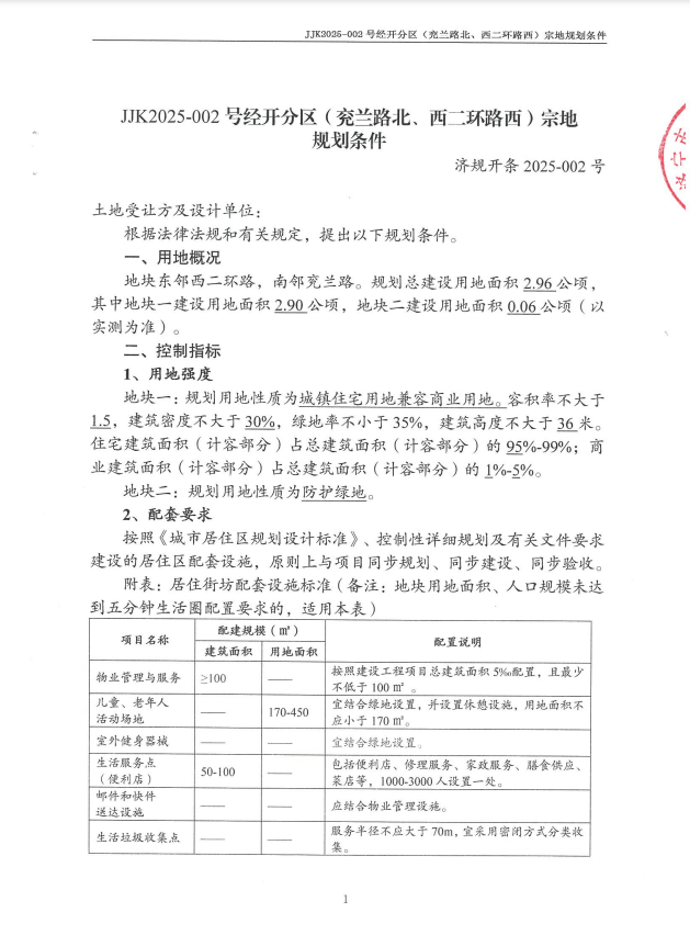 地块二:JJK2025-002号经开分区(兖兰路北西二环路西)宗地地块一【济宁尚城城市建设发展有限公司竞得】