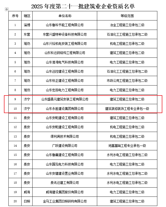 小编了解到:近日,山东省住房和城乡建设厅发布关于2025年度第二十一批建筑业企业资质名单的公告,根据《建筑业企业资质管理规定》(住房城乡建设部第22号令)及有关实施要求,山东省住房和城乡建设厅对2025年度第二十一批建筑业企业资质的申请材料进行了公示,现将核准的名单予以公告。