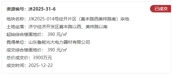 地块六:JJK2025-014号经开片区(嘉丰路西美祥路南)宗地【山东鲁能光大电力器材有限公司竞得】