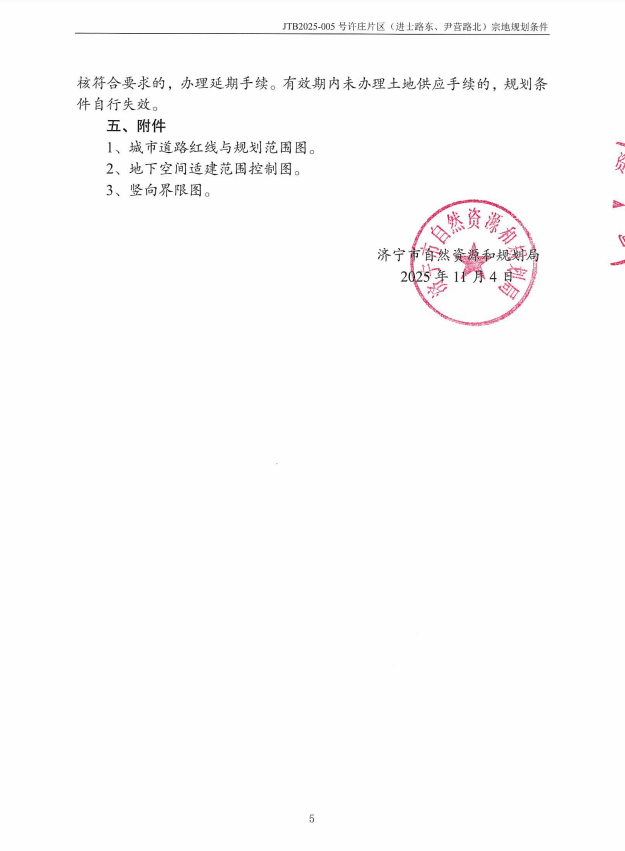地块名:太白湖新区JTB2025-005号许庄片区(进士路东尹营路北)宗地【济宁盛众置业有限公司竞得】