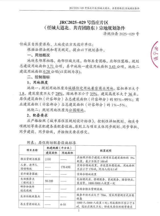 地块名:任城区JRC2025-029号岱庄片区(任城大道北共青团路东)地块一【山东鑫声玉城置业有限公司竞得】