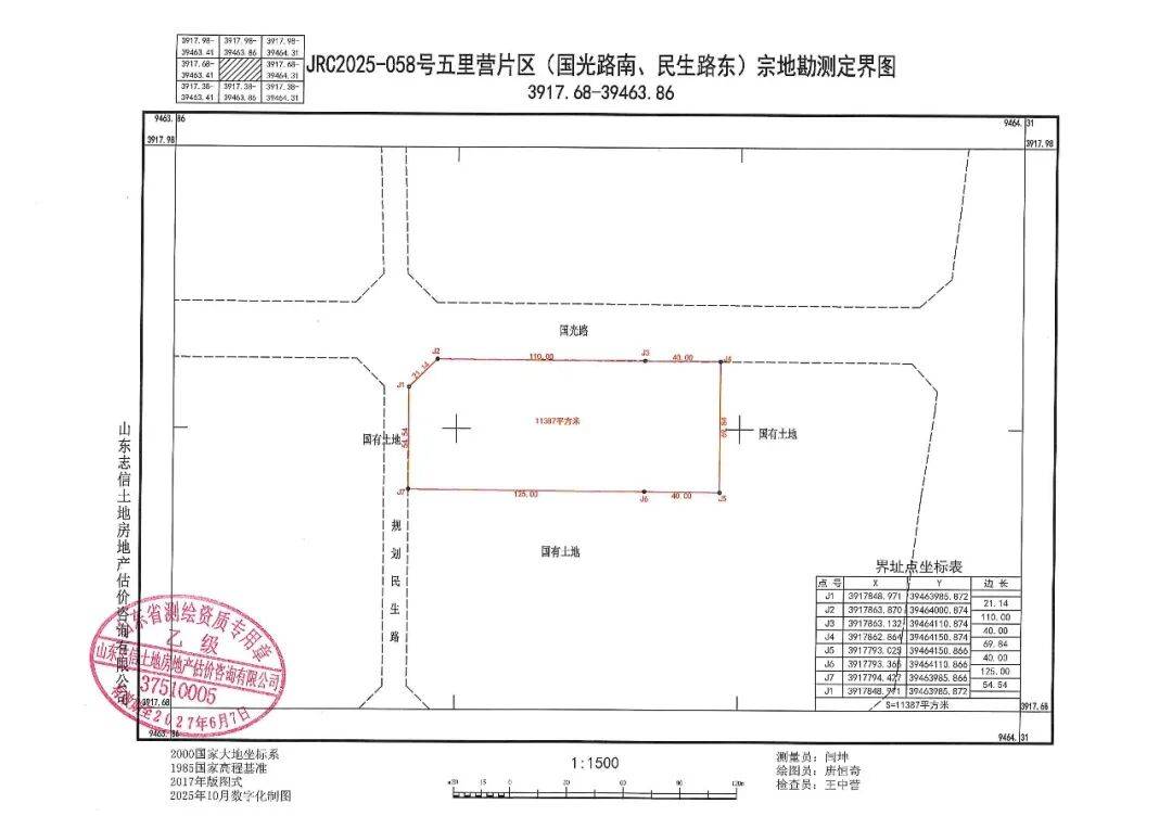 地块名:任城区JRC2025-058号五里营片区(国光路南民生路东)地块【山东济宁任兴置业有限公司竞得】