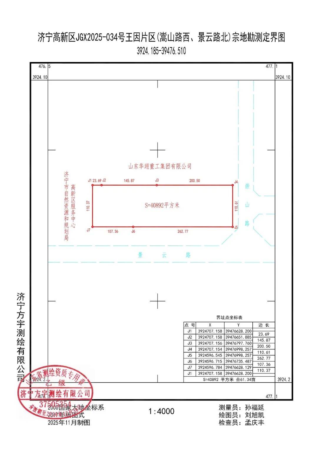 地块二:济宁高新区JGX2025-034号王因片区(景云路北嵩山路西)宗地【山东华翊重工集团有限公司竞得】