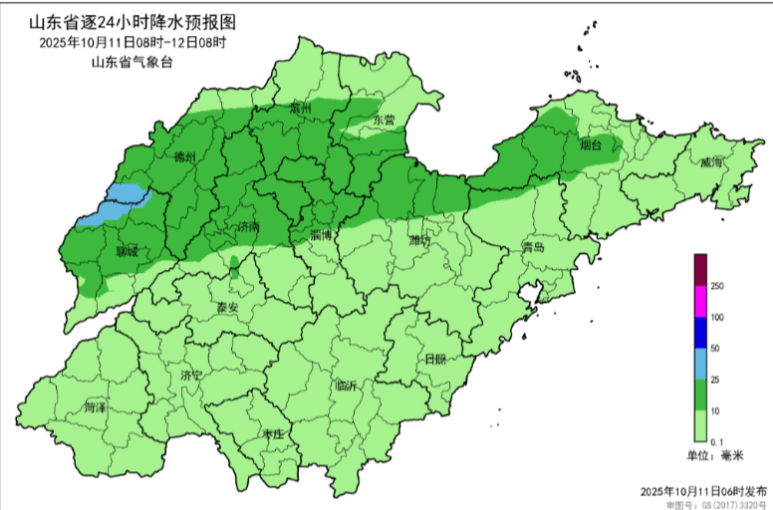 11日白天到夜间,全省天气阴,济南、淄博、潍坊北部、烟台北部和鲁西北地区有小到中雨局部大雨,其他地区有小雨局部中雨。北风,北部沿海地区3~4级增强到4~5级阵风6级,其他地区3~4级。