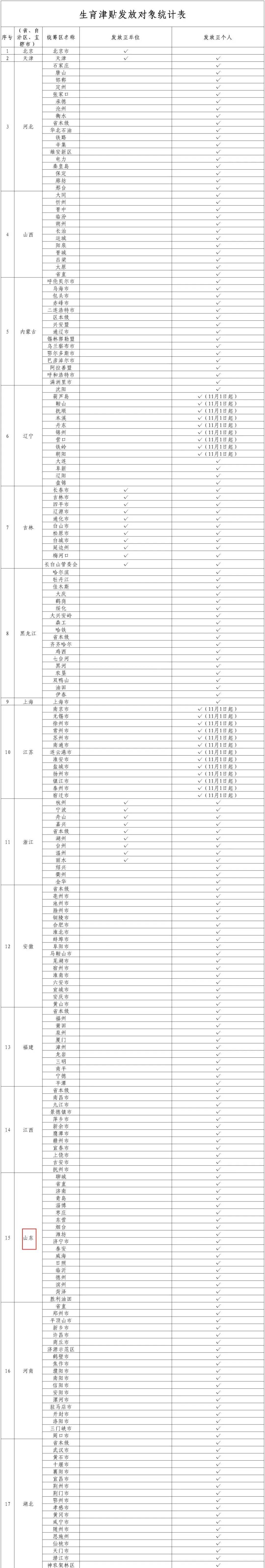 各统筹区生育津贴发放的具体情况,请参见下表。
