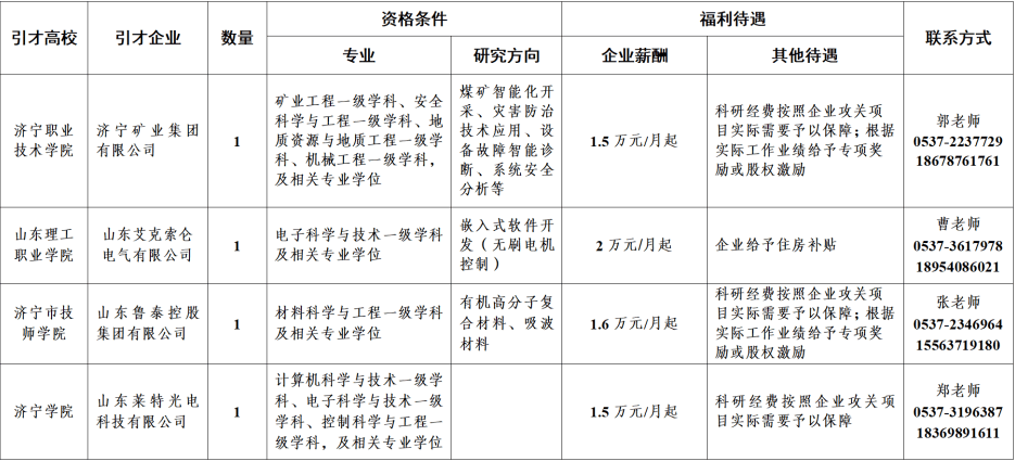 为深入推进“五链融合”协同机制,精准灵活引进重点产业紧缺高层次人才,济宁市人社局创新实施“校企双聘”重点产业博士专引计划,依托高校院所事业编制资源,专项引进创新型博士人才,到企业开展科研和技术创新等工作,助力重点产业高质量发展。