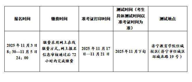 济宁市2025年11月份面向社会人员的普通话水平测试具体安排如下: