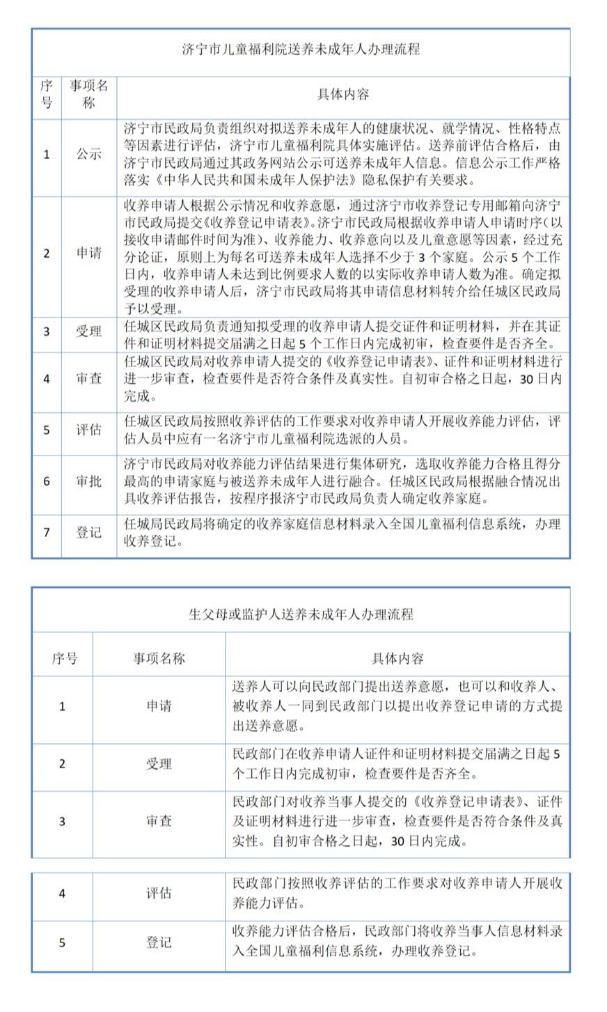《通知》明确了市、县两级民政部门收养登记业务办理的管辖权限和范围。济宁市民政局负责办理华侨以及居住在香港、澳门、台湾地区的中国公民在内地收养子女的收养登记相关业务以及济宁市儿童福利院内可送养未成年人的信息公示工作。按照县级行政区划,各县(市、区)民政局负责办理中国公民在中国境内收养子女的收养登记相关业务,任城区民政局同时负责办理中国内地居民申请收养济宁市儿童福利院内可送养未成年人的收养登记相关业务。