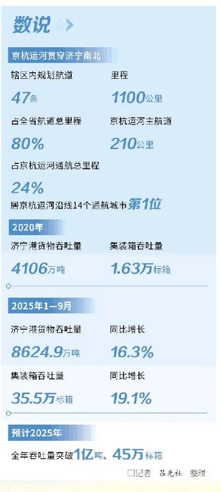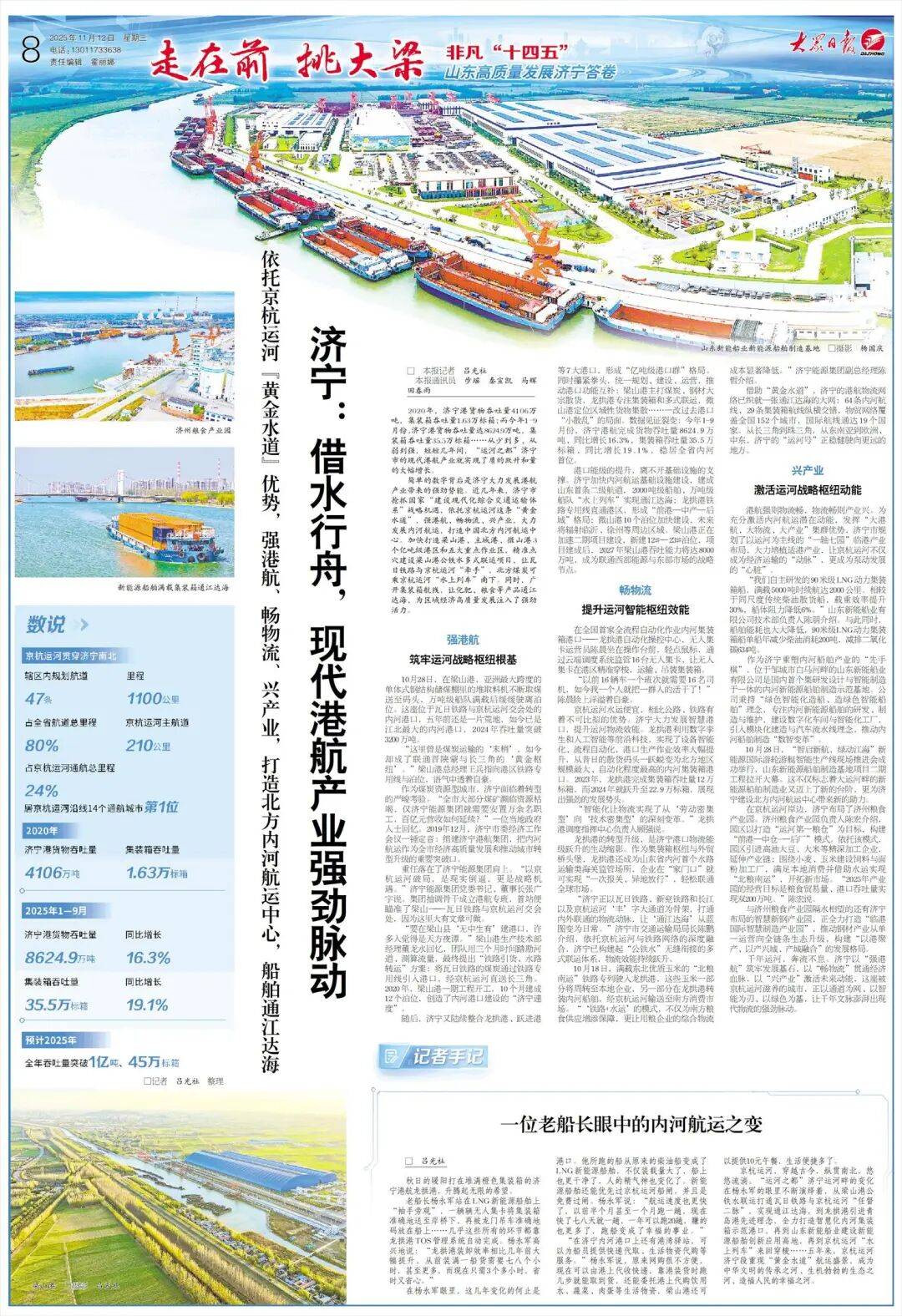 千年运河,奔流不息。济宁以“强港航”筑牢发展基石,以“畅物流”贯通经济血脉,以“兴产业”激活未来动能,这座被京杭运河滋养的城市,正以通道为网、以智能为刃、以绿色为基,让千年文脉澎湃出现代物流的强劲脉动。