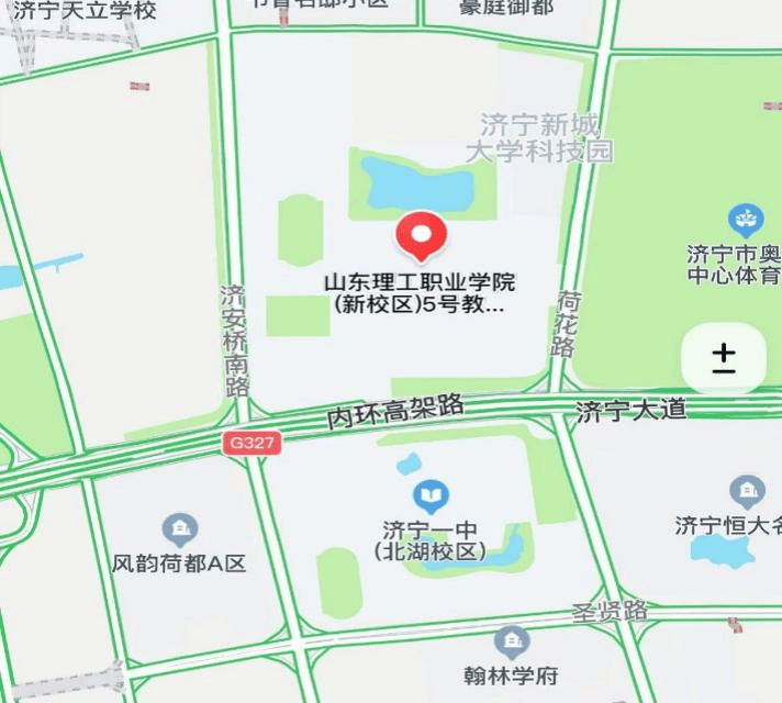 7、济宁职业技术学院1号楼(济宁市任城区金宇路77号)考生请从南门进入校区