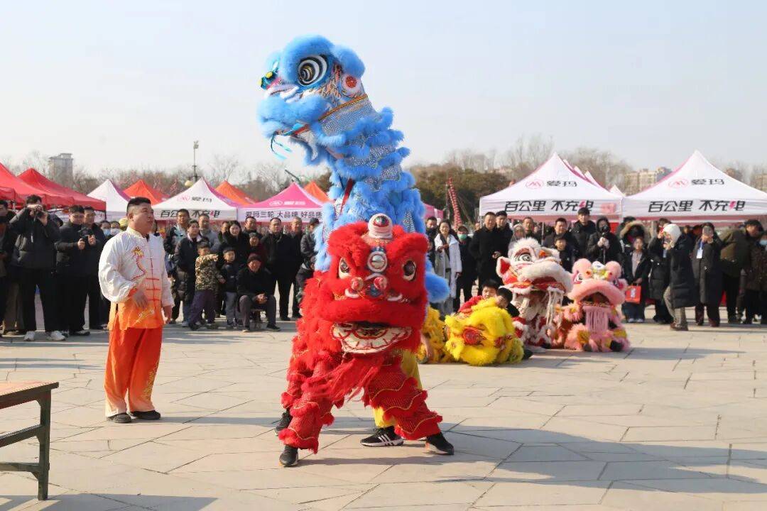 活动现场暖意融融、年味十足,秧歌腰鼓铿锵有力、舞狮表演灵动传神,浓郁的新春民俗气息扑面而来。