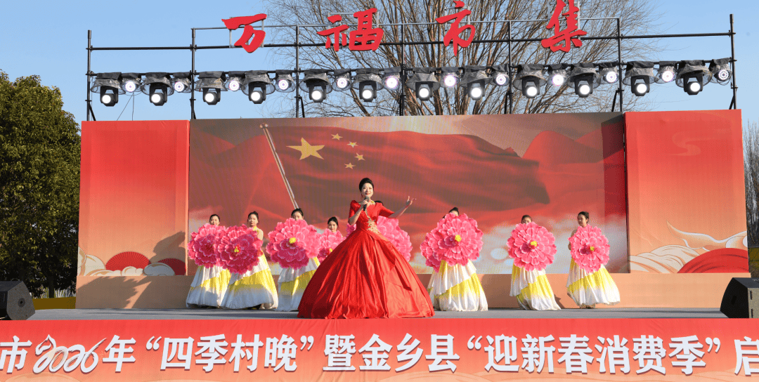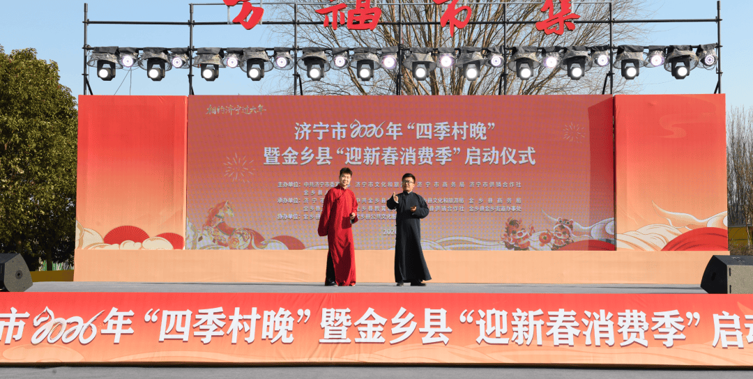 2月7日,济宁市2026年“四季村晚”暨金乡县“迎新春消费季”在金乡县万福市集成功举办。本次活动以文化为纽带、以民俗为载体、以消费为抓手,丰富了广大市民群众新春精神文化生活,激活了城乡消费活力,正式拉开了全市2026年“四季村晚”系列活动的序幕,为丙午马年新春增添了浓厚喜庆氛围。