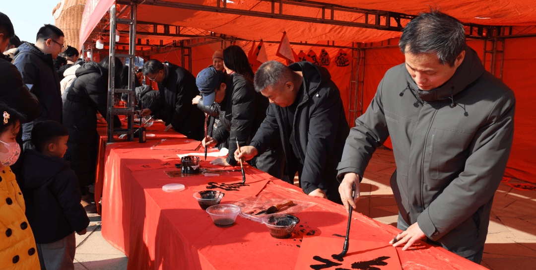 与各项活动同步,万福市集内精心设置了非遗商品、农特产品、商家促销等特色商品展销区,实现了文化惠民与促消费的双向赋能、良性互动。此外,文化惠民互动区内,三大特色活动温暖上演,“万福迎春”送春联活动中,市、县两级书法家挥毫泼墨、笔走龙蛇,一幅幅饱含新春祝福的春联跃然纸上,免费赠送给现场群众,用笔墨传递温暖、寄托期盼;“包水饺 迎新春”活动现场,金乡街道组织志愿者与周边村居群众围坐在一起,和面、擀皮、包馅,分工协作、其乐融融,在动手实践中传承优秀传统文化,弘扬文明节约的良好风尚,让欢乐祥和的节日氛围更加浓厚。义诊活动区内,金乡县骨干医生专家现场坐诊,提供健康咨询、基础体检、慢病指导等便民服务,用专业守护群众健康,让新春暖意直达人心。