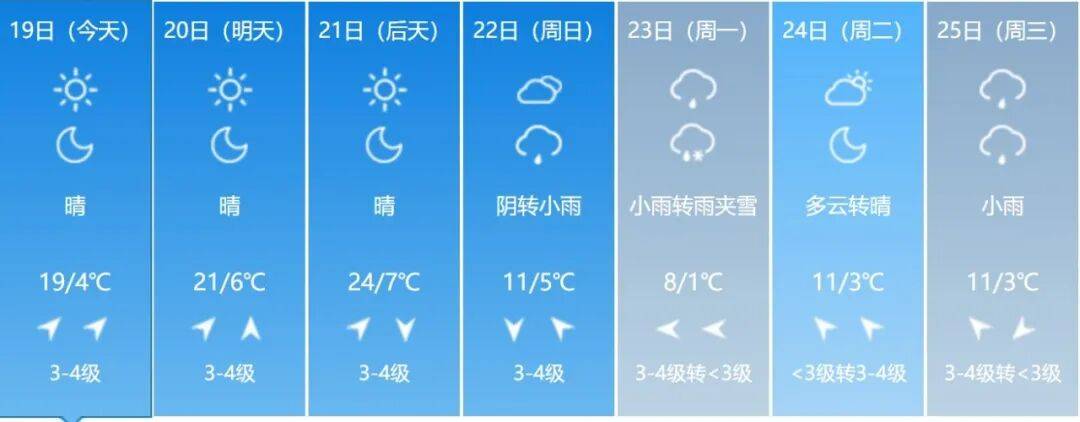 据最新天气预报,预计未来三天山东天气晴好,适宜出行,气温持续回升。21日白天我省大部地区最高气温可达22°C以上,西部地区25°C左右。期间风力逐步增大,天干物燥,一些地区森林火险气象等级较高,请注意用火安全。