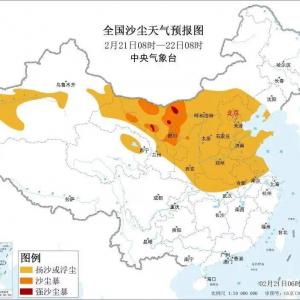 山东省气象台于2月21日06时00分继续发布陆地大风蓝色预警,大风影响期间,全省大部地区伴有扬沙或浮尘天气。