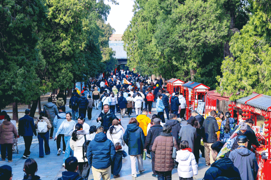 “孔府过大年・骐骥驰骋年”系列活动热度攀升,复古“圣府顺兴号”银票派发、汉服巡游沉浸式还原古礼年俗,“背《论语》免费游三孔” 掀起国学体验热潮,大成殿“马到成功”打卡墙、后花园马年投壶区成为亲子互动热门点位,沉浸式感受儒家文化深厚底蕴。