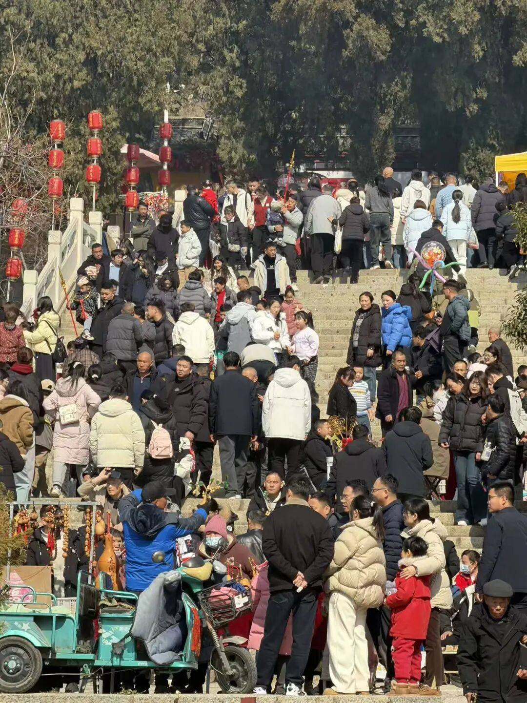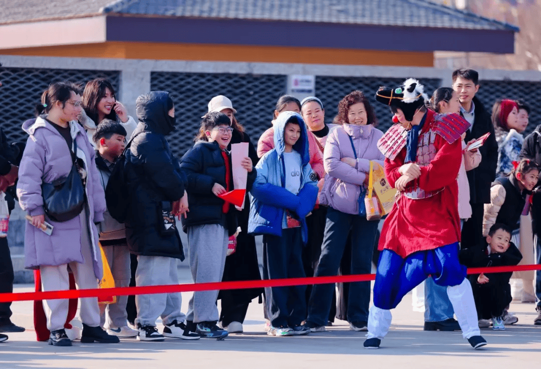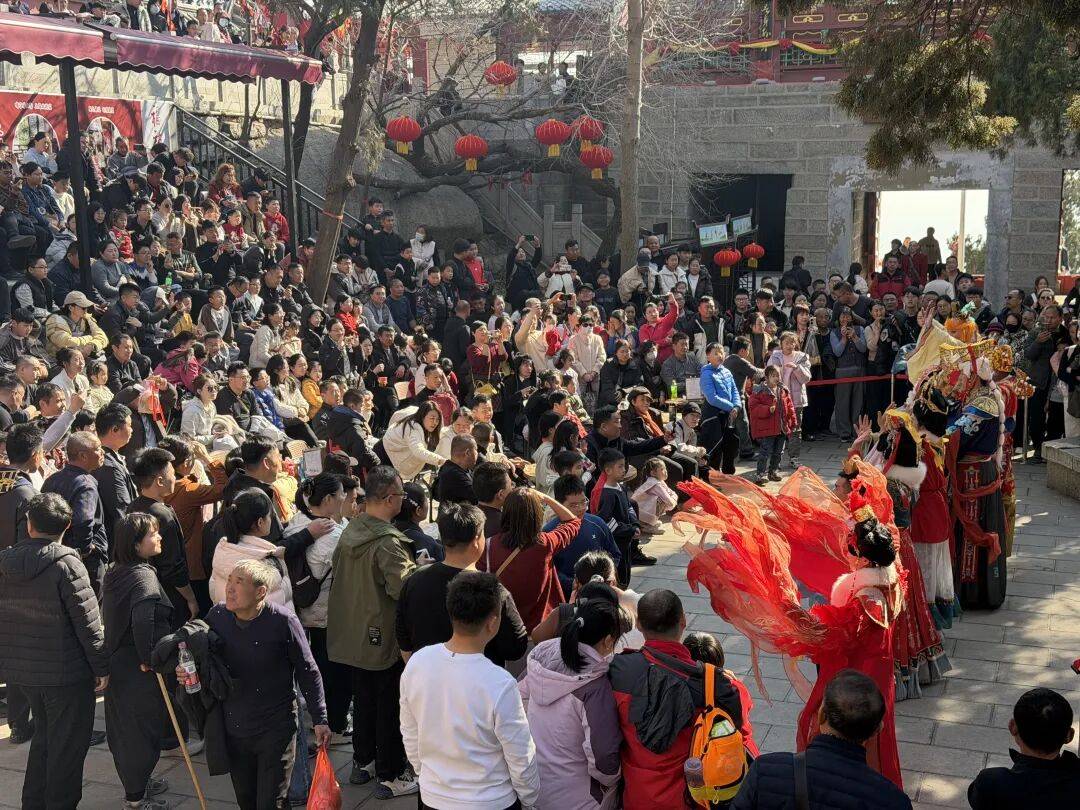 “峄山亮灯・照我前程”新春祈福庙会启幕,杂技、魔术、快板等民俗表演精彩不断,NPC 舞蹈秀、趣味互动游戏接连上线,游客在灯火阑珊中体验登山祈福传统年俗。