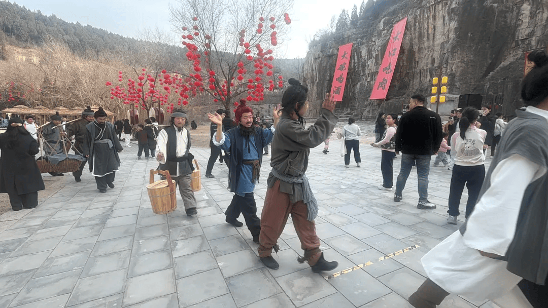 “水浒江湖年”活动精彩纷呈,《智取生辰纲》《野猪林》等经典实景大剧轮番上演,百余名水浒 NPC 沉浸式互动、宋代传统游戏实景再现,搭配开封万岁山 “每日一星” 特色演出,深度还原水浒忠义文化与民俗风情。