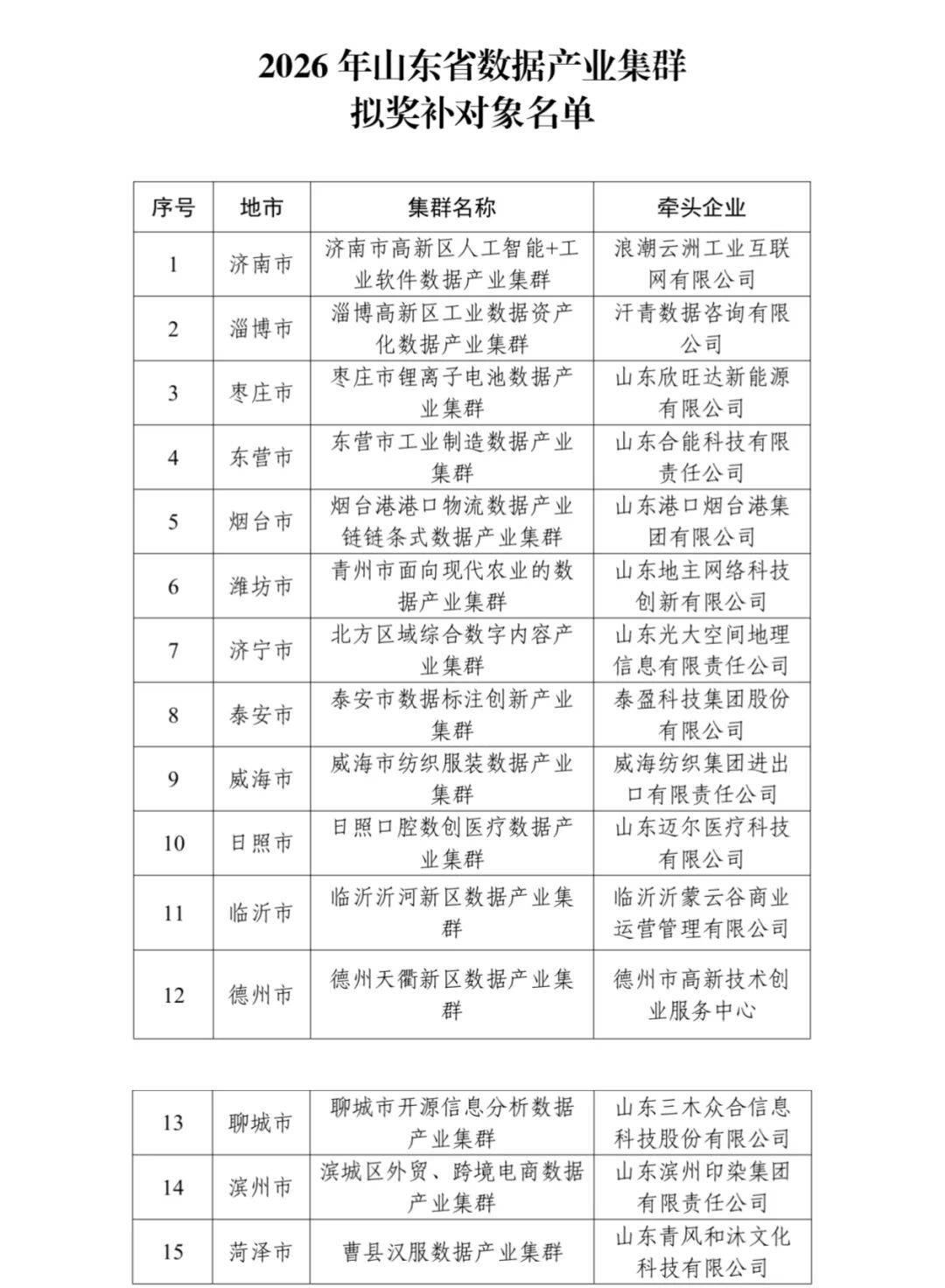 附 件:2026年山东省数据产业集群拟奖补对象名单