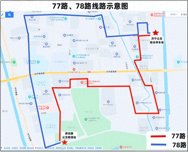 济宁公交综合停车场—水运雅居东门—和鸣天著北—温泉小镇西门—青建白鹭洲—华侨城纯水岸—济宁文化中心—圣贤路公交首末站—省运会指挥中心北—圣贤路荷花路—荷花路聚贤路—济医附院东门—济宁医学院—太白湖景区—荷花路公交枢纽站