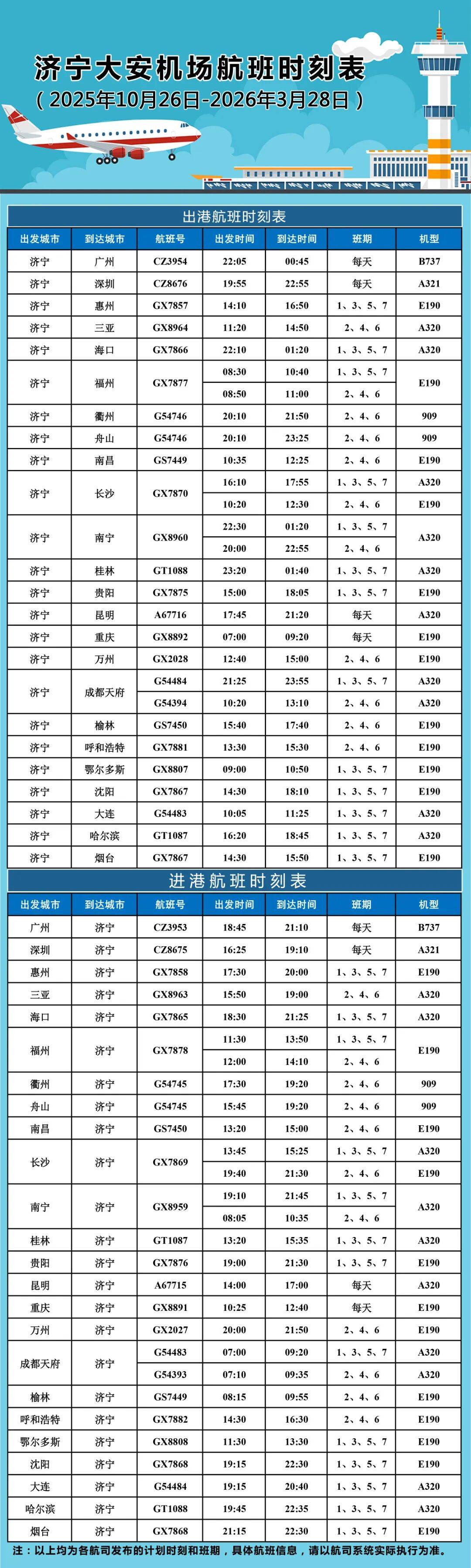 1.以上为航司发布的计划时刻和班期,具体航班信息,请以航司系统实际执行为准;