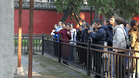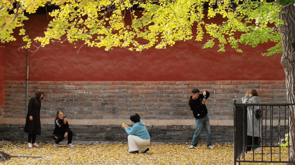 初冬时节,山东济宁曲阜孔庙旁的半壁街铺满金色银杏叶,慕名而来的游客络绎不绝。