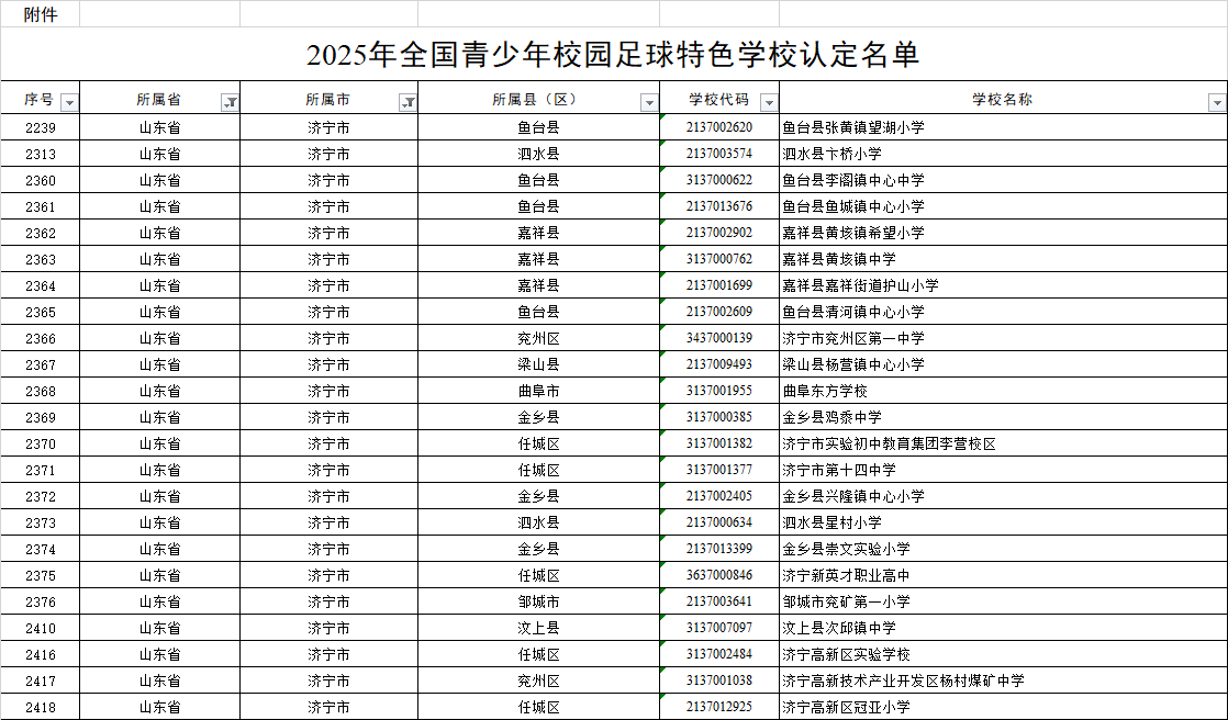近日,教育部公布《关于2025年全国青少年校园足球特色学校认定结果的公示》,济宁市23所学校成功入选2025年全国青少年校园足球特色学校公示名单。