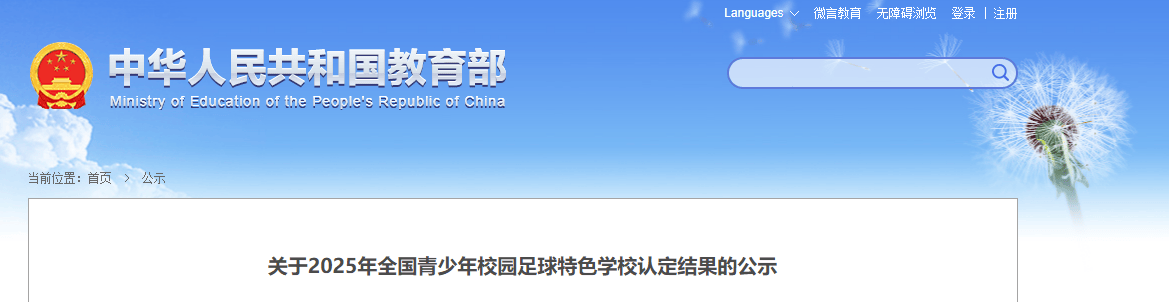 关于2025年全国青少年校园足球特色学校认定结果的公示