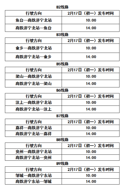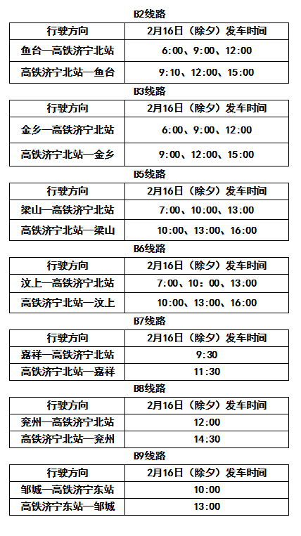 高铁公交专线时间表(除夕)