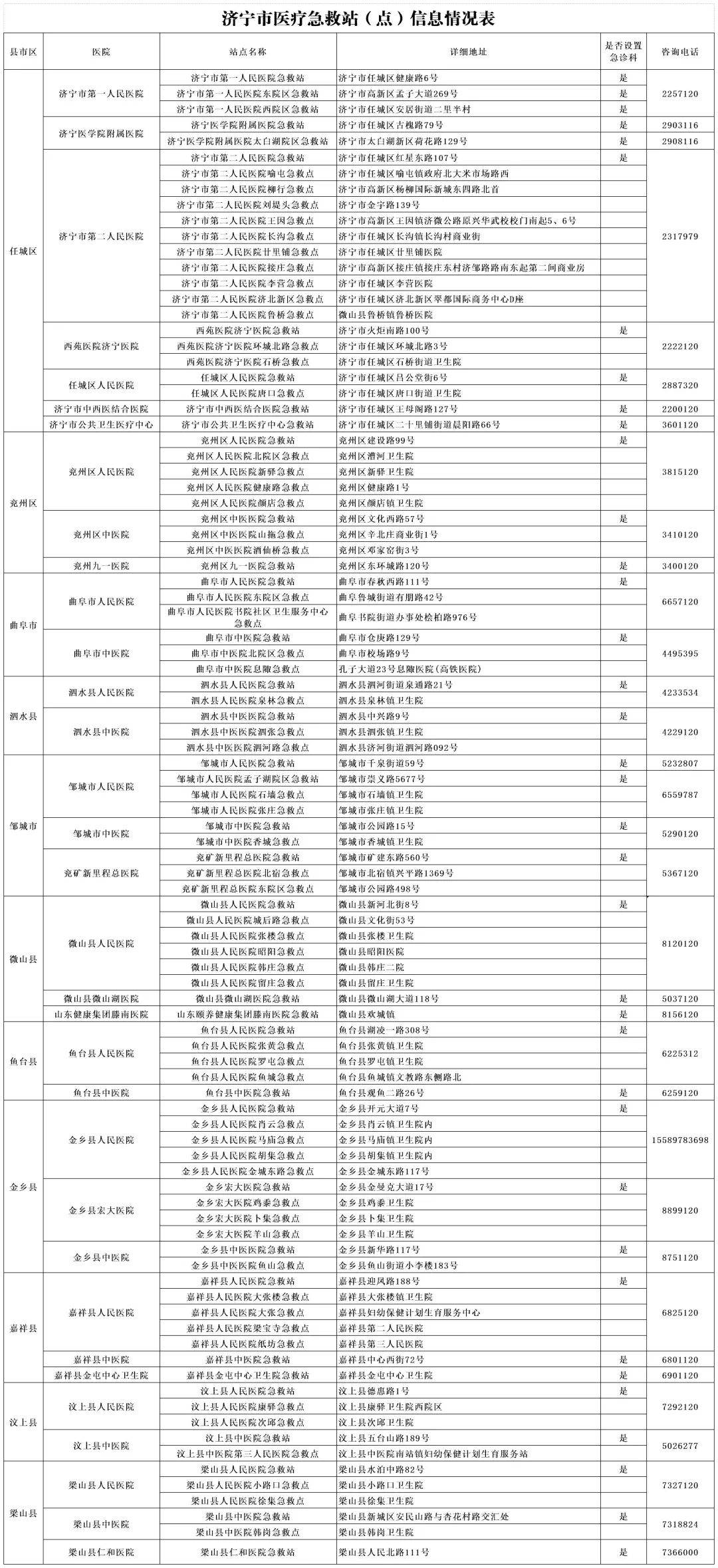 住为方便群众看病就医,现将济宁市医疗急救站(点)信息情况进行公示。