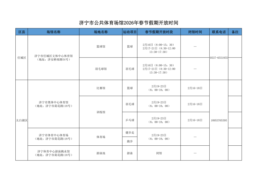 为深入践行全民健身国家战略,切实满足广大群众2026年春节假期体育健身、休闲放松的多样化需求,营造喜庆祥和、活力满满的新春氛围,济宁市主要大中型公共场馆将在春节假期持续推行低收费或免费开放惠民政策,让群众在欢乐过节的同时,尽享运动乐趣、拥抱健康生活。
