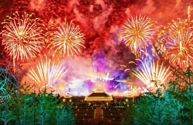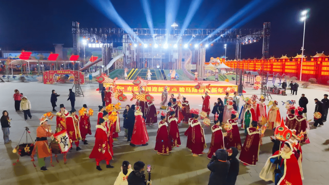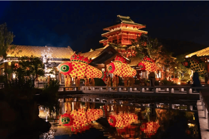 亦乐田园好戏连台,大年初一到初七百场演出全天候轮番上演,白天有舞龙舞狮、英歌舞、非遗快闪,夜晚则有打铁花、烟花瀑布、鱼灯夜游和篝火晚会等,让人目不暇接。
