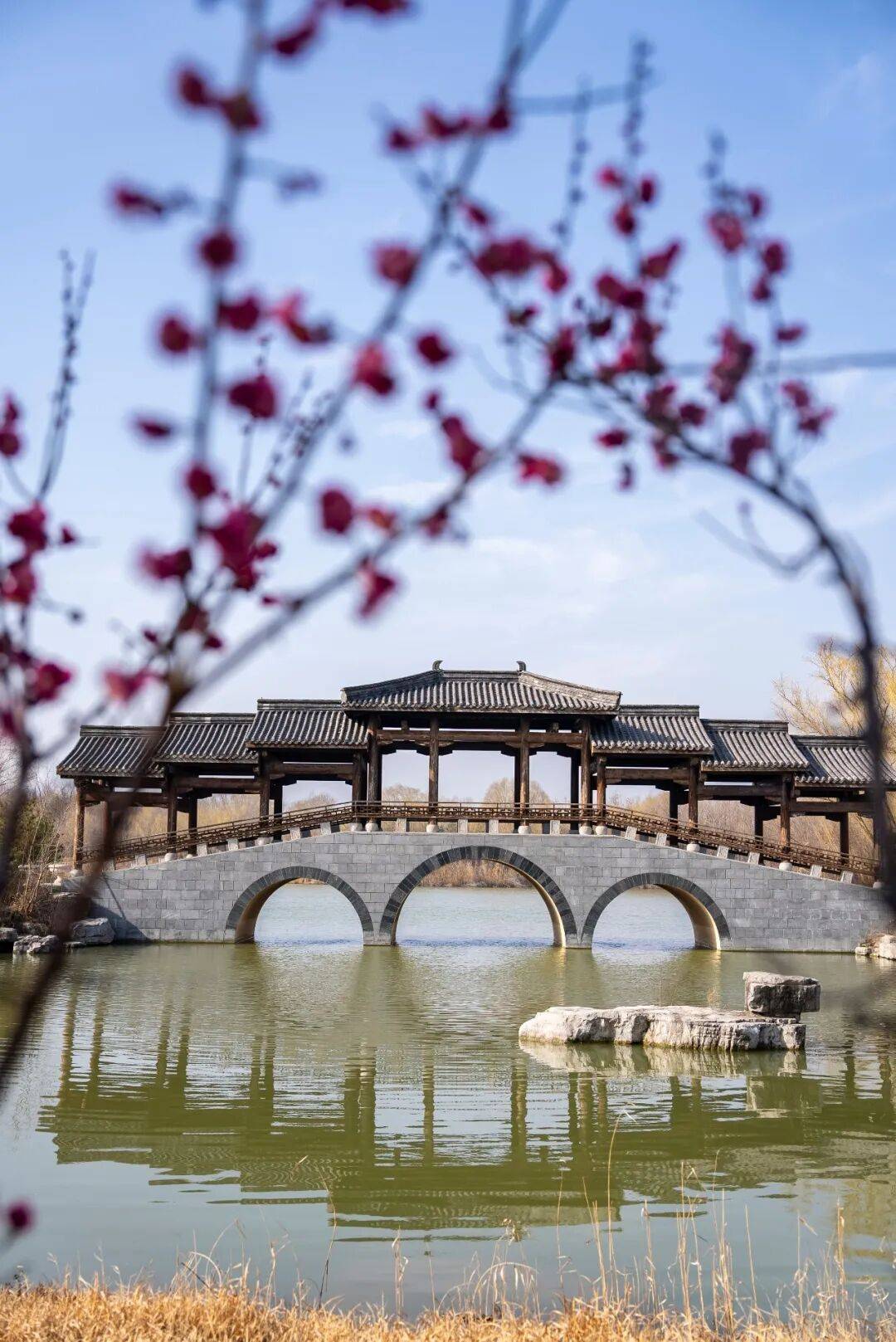济宁早春的第一份浪漫,藏在马桥湿地公园的梅林里。