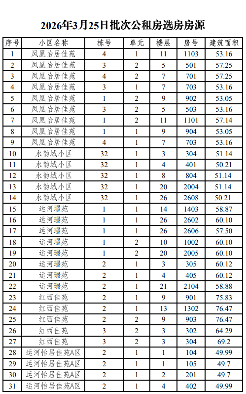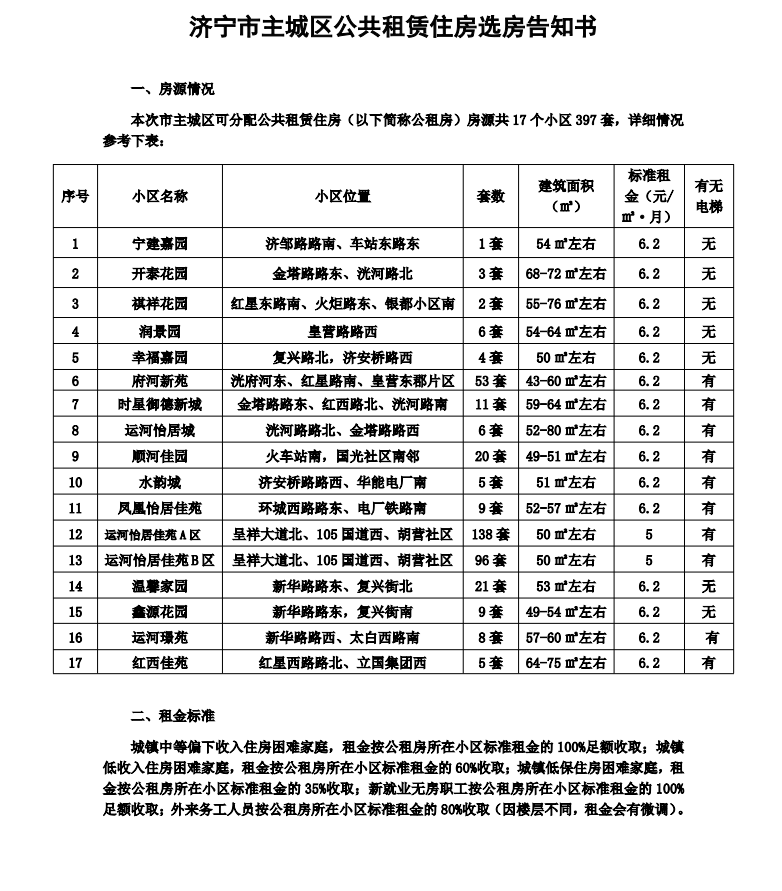 小编相关渠道获悉:近日,济宁市住房保障和房地产发展事务中心发布济宁市主城区公共租赁住房选房告知书及2026年3月25日批次公租房选房房源。涉及济宁市主城区17个小区397套房源,详情如下。