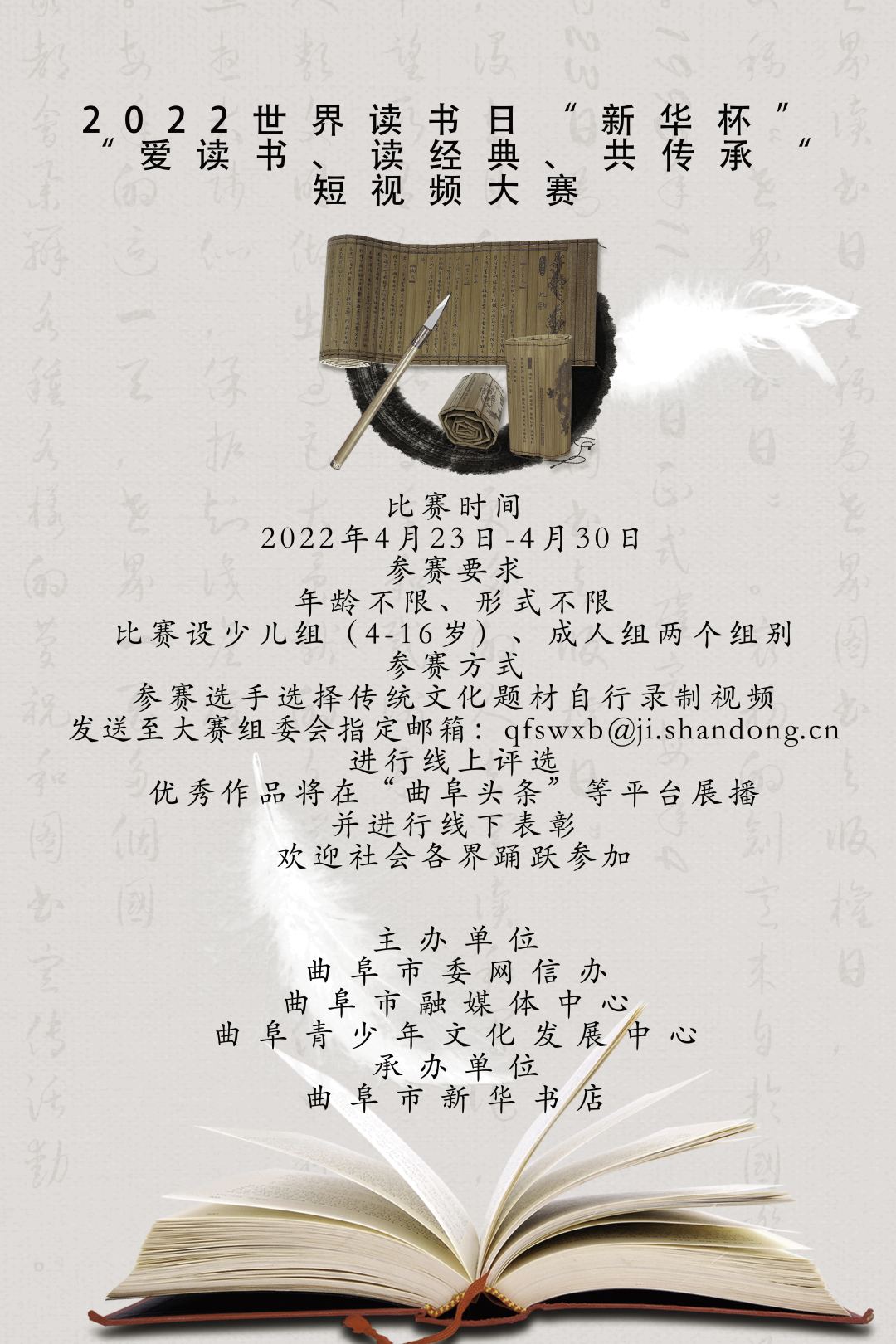 组织机构主办单位:曲阜市委网信办、曲阜市融媒体中心、曲阜青少年文化发展中心