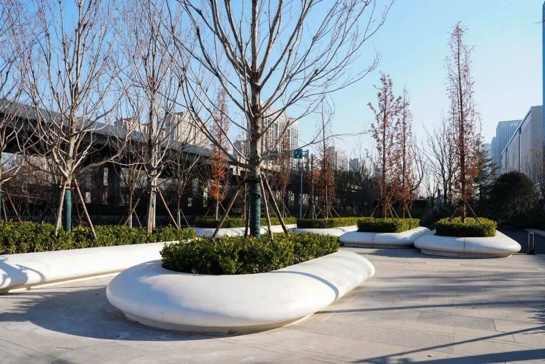 位于济宁大道与公主路交叉口东南角的新天地口袋公园,是上班族的“福音”。公园景观与新天地商务中心总体布局相呼应,健身步道蜿蜒其间,精致的景观小品点缀其中,为园区办公人员提供了户外洽谈、休闲游憩的小微绿色空间。忙碌之余,下楼走一走,在绿意中放松身心,重拾工作活力。