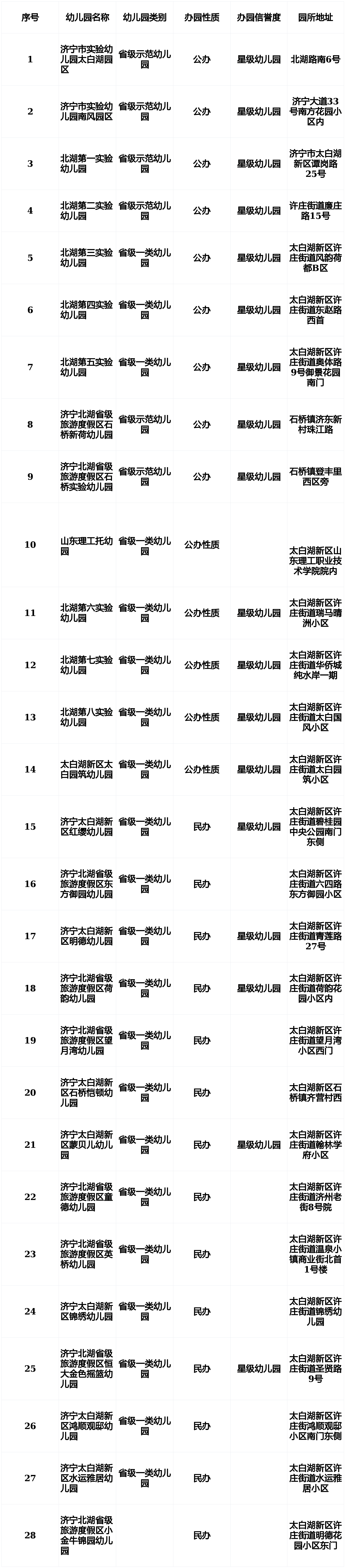 太白湖新区幼儿园“白名单”(28所)